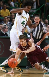 Zach Kinsley, Anthony Jones 0 By KMAN Staff on January 3, 2012 Texas A&M guard Zach Kinsley (23) falls in in front of Baylor defender Anthony Jones (41) in first half of an NCAA college basketball game Monday Jan. 2, 2012, in Waco, Texas. (AP Photo/Duane A. Laverty)