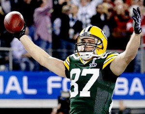 Green Bay Packers’ Jordy Nelson (87) celebrates his touchdown reception against the Pittsburgh Steelers during the first half of the NFL football Super Bowl XLV game Sunday, Feb. 6, 2011, in Arlington, Texas. (AP Photo/Chris O’Meara) Original Filename: Super Bowl Football.JPEG-04f2d.jpg