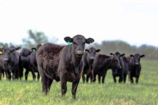 Angus herd with heifer in foreground