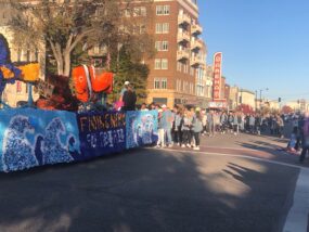 Manhattan residents watched on from the sidewalks of Poyntz Avenue as the floats drove down the street. Also participating K-State students tossed candy to children. Former NFL and K-State Football standout Jordy Nelson led the Disney themed parade as the Grand Marshall.