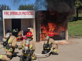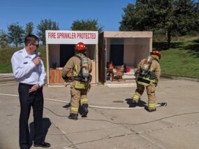 The main demonstration they had was on sprinkler systems in the house. Two similar rooms were setup next to each other; one with a sprinkler and one without. The firefighters then started the fire in the room without a sprinkler and showed how fast and how damaging the fire can get. They then started a fire in the room with a sprinkler to show how quickly the fire can be contained.