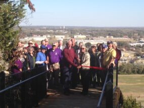 Kiwanis Club President Doug Meloan and Secretary Kitty Pursley cutting the ribbon on the new platform.