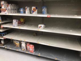 You are at:Home»Local News»Long lines, bare shelves common as customers flock to Manhattan grocery stores amid virus concerns»Walmart shelves 2
