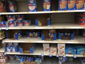 You are at:Home»Local News»Long lines, bare shelves common as customers flock to Manhattan grocery stores amid virus concerns»Walmart shelves 5