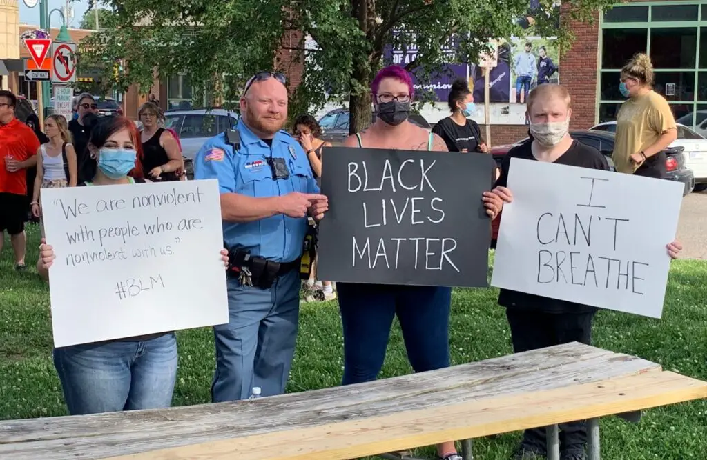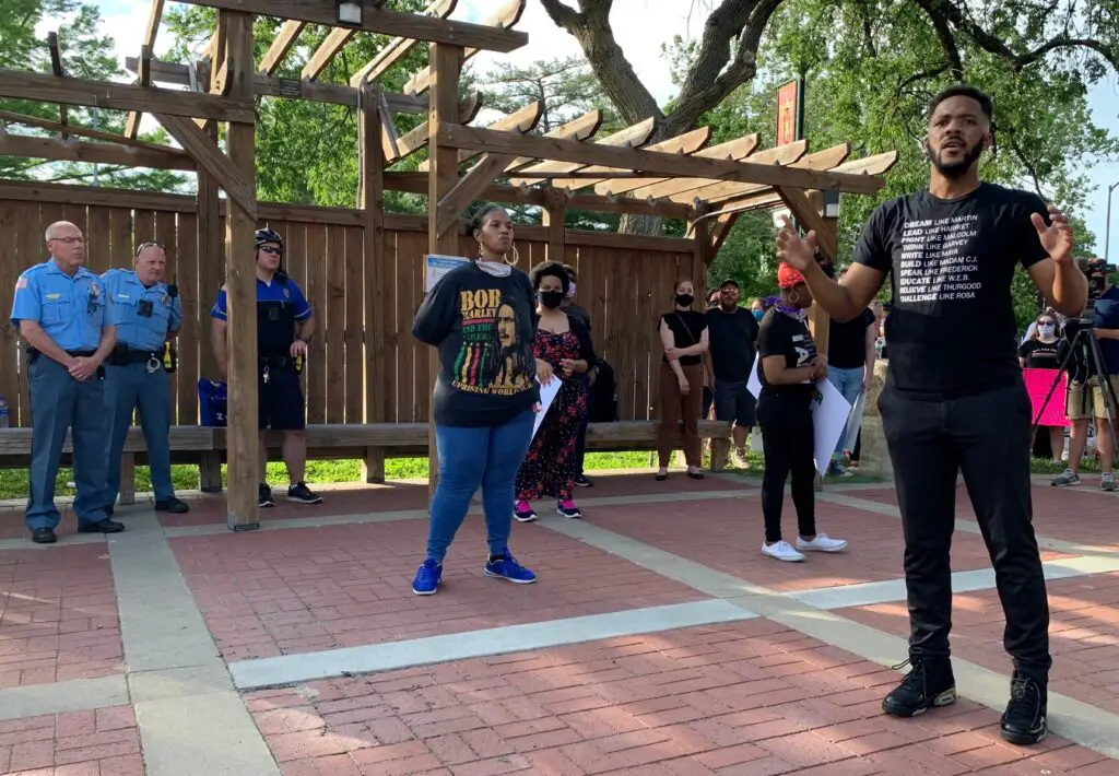 Prior to the protesters taking to the streets, people gathered in Triangle Park at 6:30 p.m. to listen to a line up of speakers which included Dennis Butler, the Riley Count Police Department director.