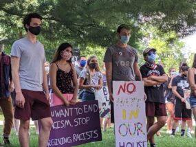 Around 100 people on July 4th marched from Aggieville’s Triangle Park to K-State President Richard Myers’ home on campus, protesting racism in the university community and calling for accountability.