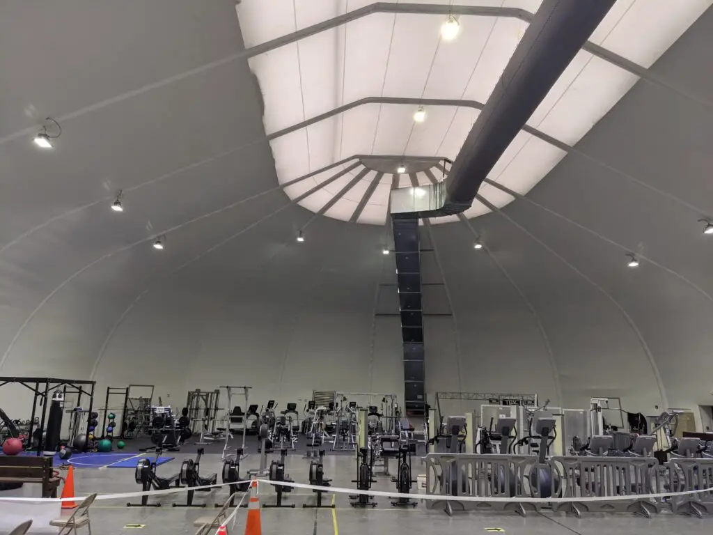 Hospital Chief of Logistics Jose Espinoza spoke to the process of moving the vaccine to its “clamshell,” a tension fabric structure just outside the hospital, where the vaccines will be administered to soldiers.
