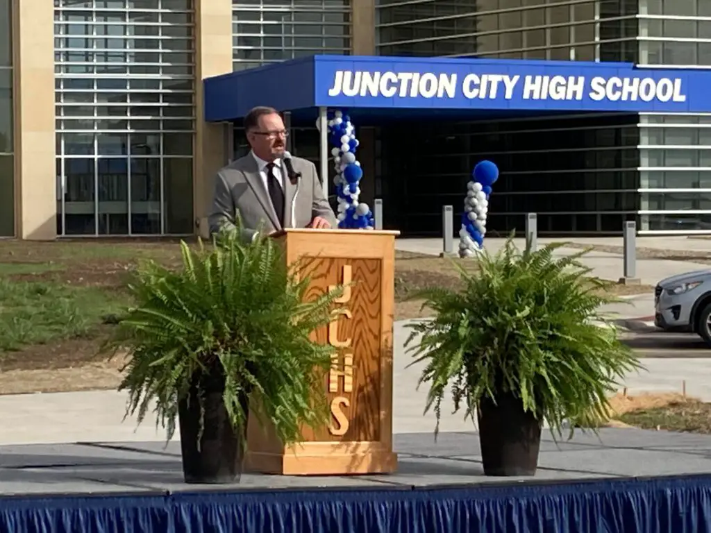 Geary County Schools USD 475 hosted a ribbon cutting and dedication ceremony for the 437,000 square foot facility. Principal Merrier Jackson says it’s the largest public school building in the state of Kansas, and by her estimation, the third largest school building in the nation.