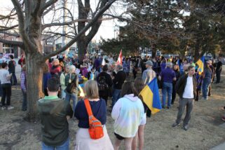 You are at:Home»Local News»Manhattan community members gather to show support for Ukraine»0301-Vigil 5