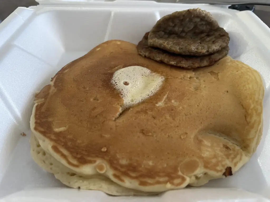 Those who drove up or had pancakes delivered received a promotional cup from Anderson Knights Architects, which can be brought back to the restaurant anytime through next year’s Pancakes for Pawnee event, for a free coffee, tea or soft drink with a purchase.