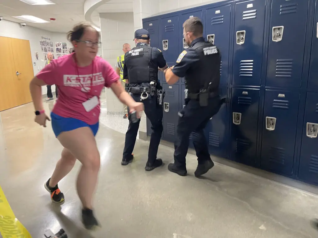 Members of RCPD, Manhattan Fire Department, Riley County EMS, KSU PD, volunteers, representatives from USD 383 and other law enforcement partners gathered at Anthony Middle School for this year’s training.