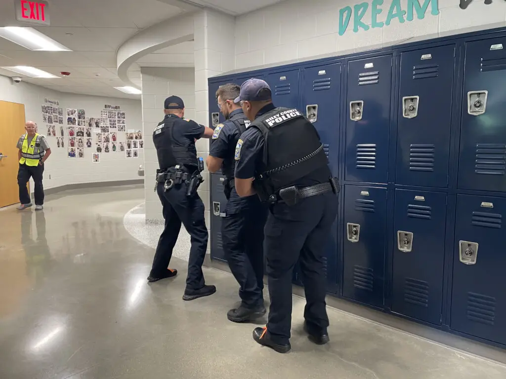 During the exercises, community volunteers acted as the victims and the perpetrator in order to help create a more realistic school shooting scenario.