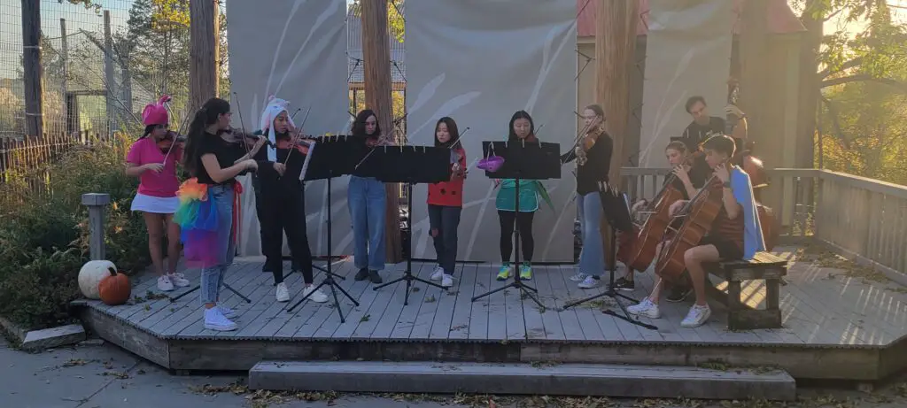 You’re hearing the sounds of the Manhattan High School orchestra, one of several volunteers to help put on the zoo’s most popular annual event. It draws more than 5,000 visitors for trick-or-treating and seeing the zoo’s 150 species. Friday was open to individuals with special needs, while Saturday and Sunday’s event featured all other communities.