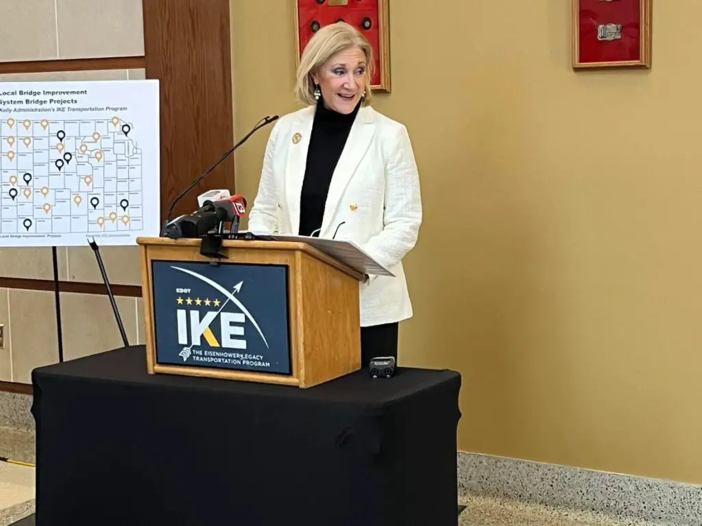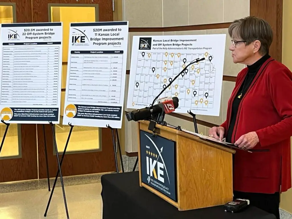 Gov. Laura Kelly was in Westmoreland Tuesday to announce more than $40 million will support 33 local and off-system bridge projects across the state in fiscal year 2024, including one in rural Pottawatomie County.
