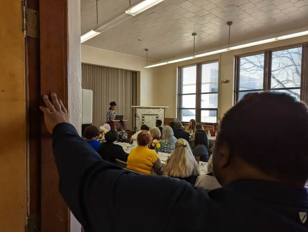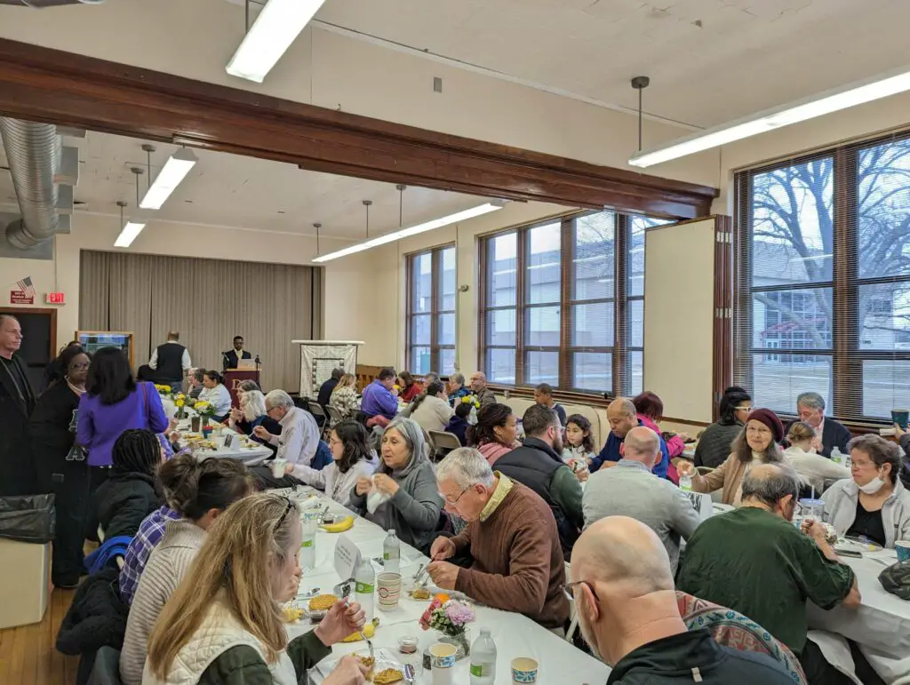 Dozens gathered Monday inside the Douglass Center Annex, formerly the Douglass School, for the annual MLK Community Prayer Breakfast.