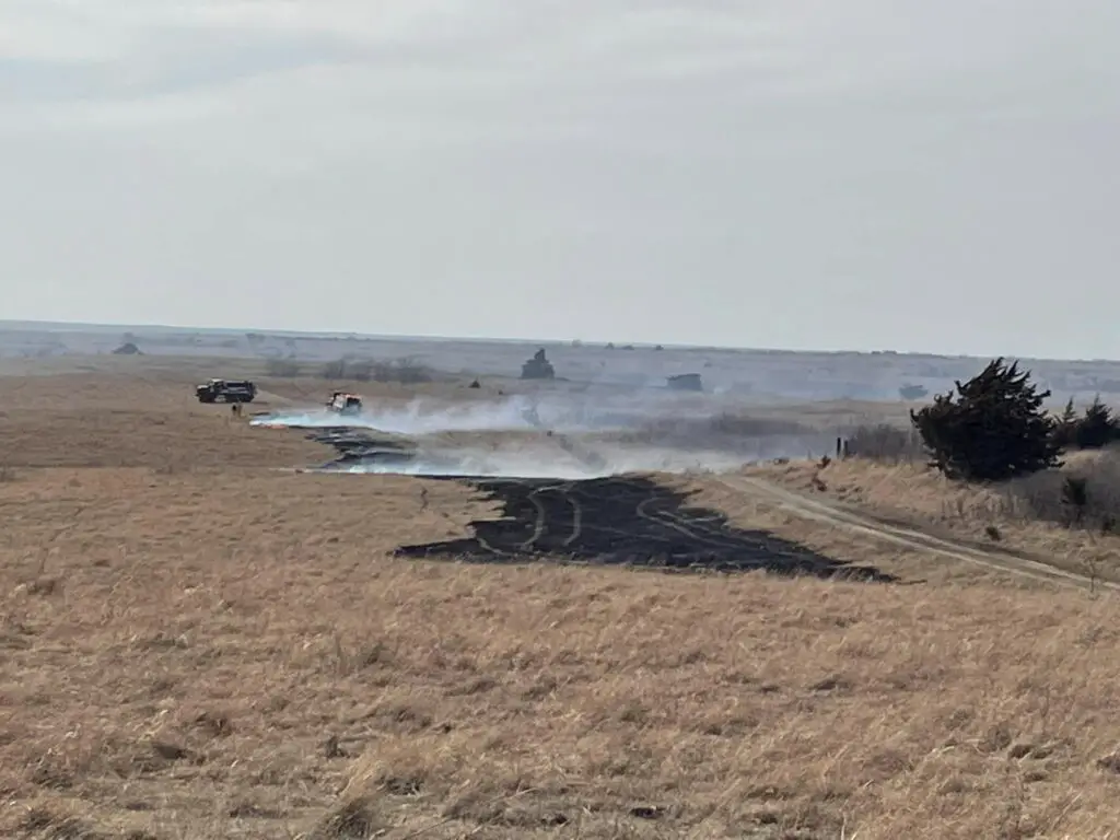 The fire scorched an estimated 400 acres in a wooded area near Keats along Hidden Valley Road. More than two dozen firefighters from Riley County Fire District No. 1, the Manhattan Fire Department and Fort Riley Fire spent more than four hours bringing the fire under control. One residence had to be temporarily evacuated for safety, but county officials say no structures or livestock were lost. No injuries were reported.
