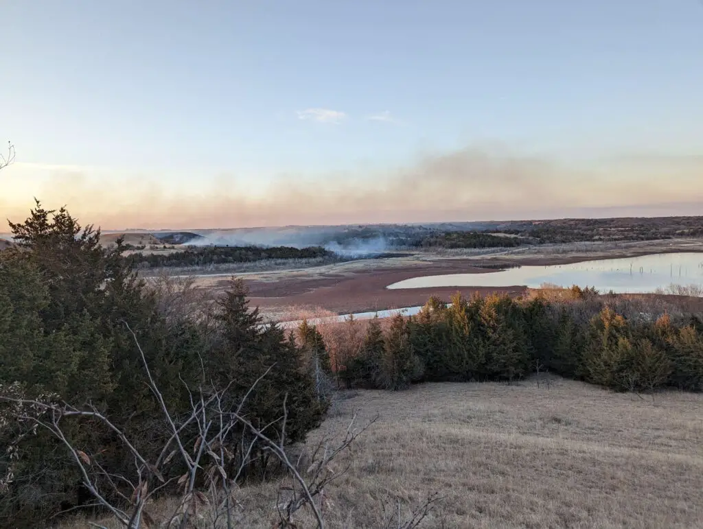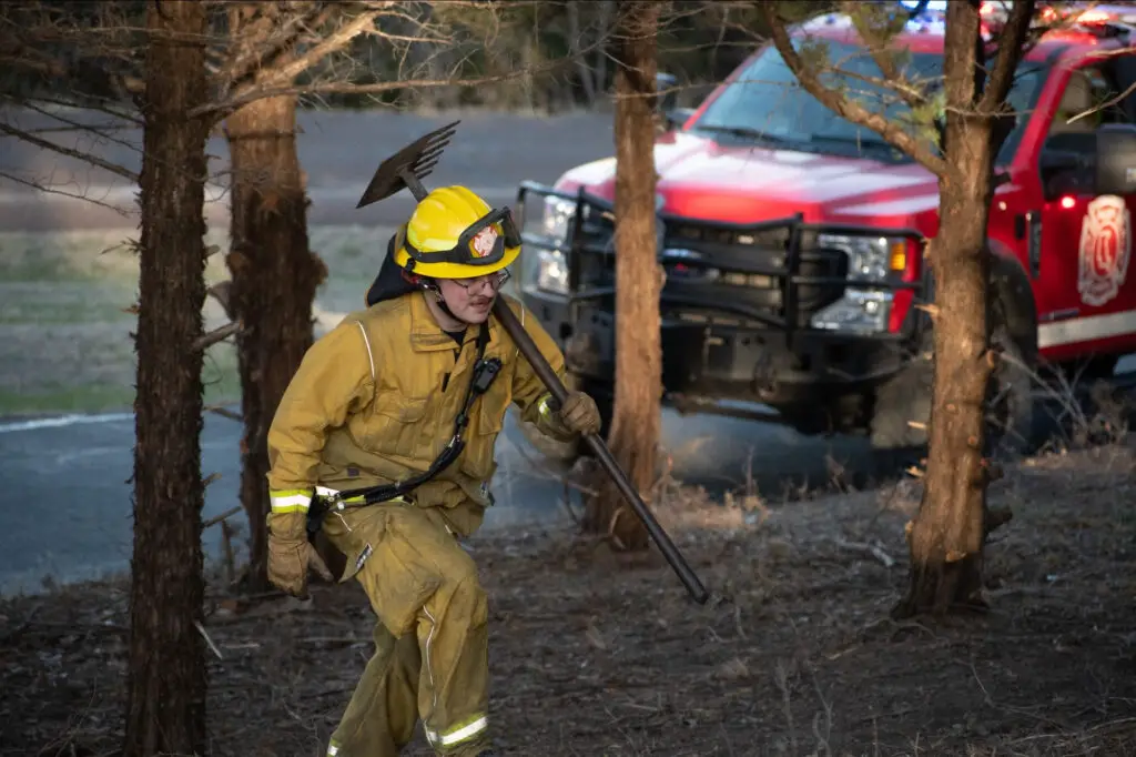 Firefighters from Riley County Fire District No. 1 were called out Friday evening to a blaze near Gehrt Road and Hwy 177, in the southeast area of the county. An estimated four acres of cedar timbers and dense forest burned, fueled by strong winds which blew embers across the highway. The fire threatened multiple homes and in some cases, came within feet of damaging property, according to Emergency Management Director Russel Stukey.