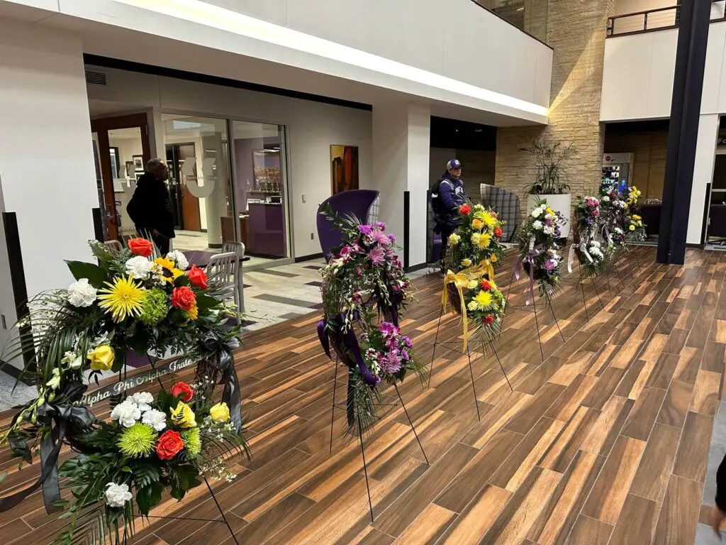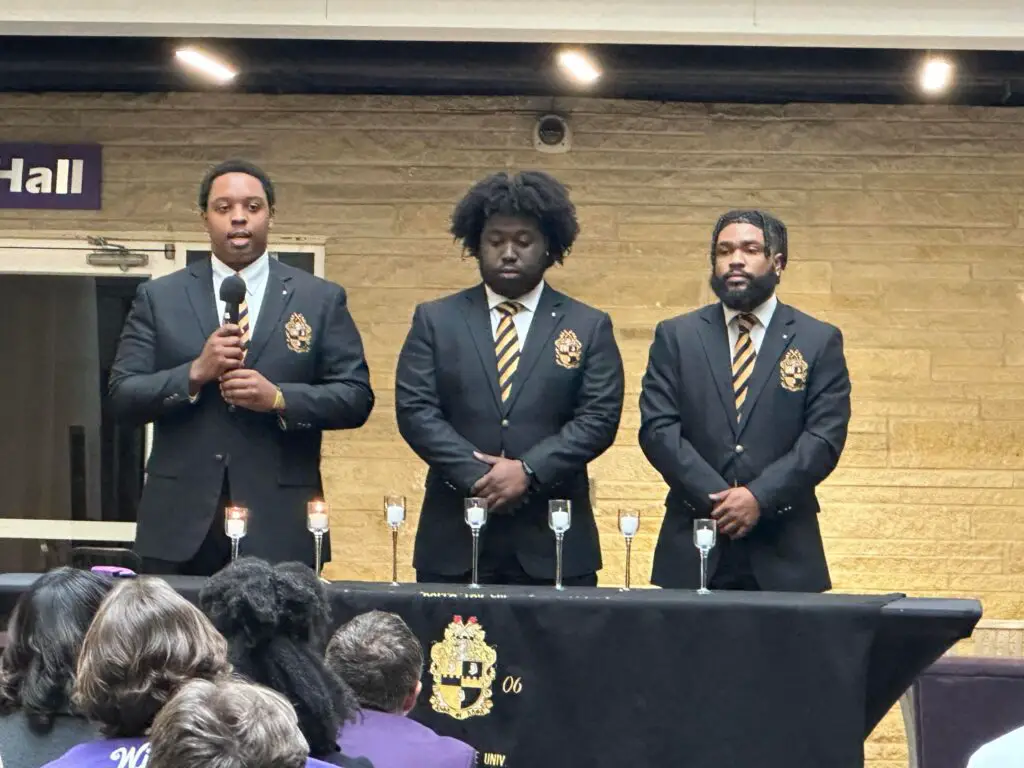 Members of King’s fraternity, Alpha Phi Alpha, were responsible for the lighting of candles in Dr. King’s memory. Wreaths were then presented to university faculty, staff, students, and community members.