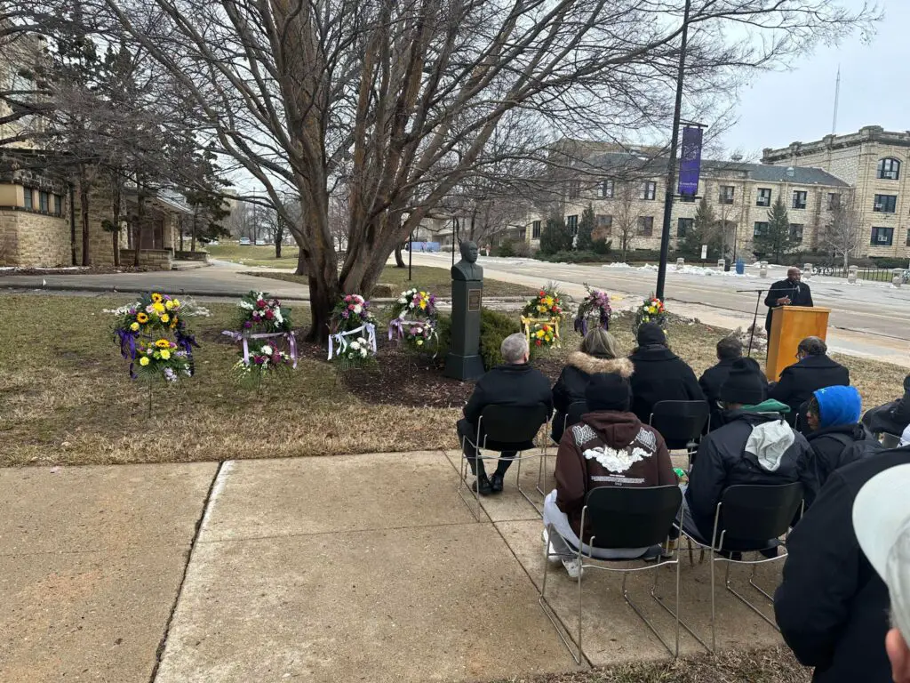 Friday marked the end of the MLK Observance Week at Kansas State University with the annual laying of wreaths at the MLK bust outside of Ahearn Fieldhouse.