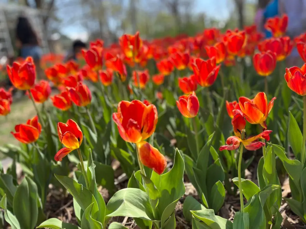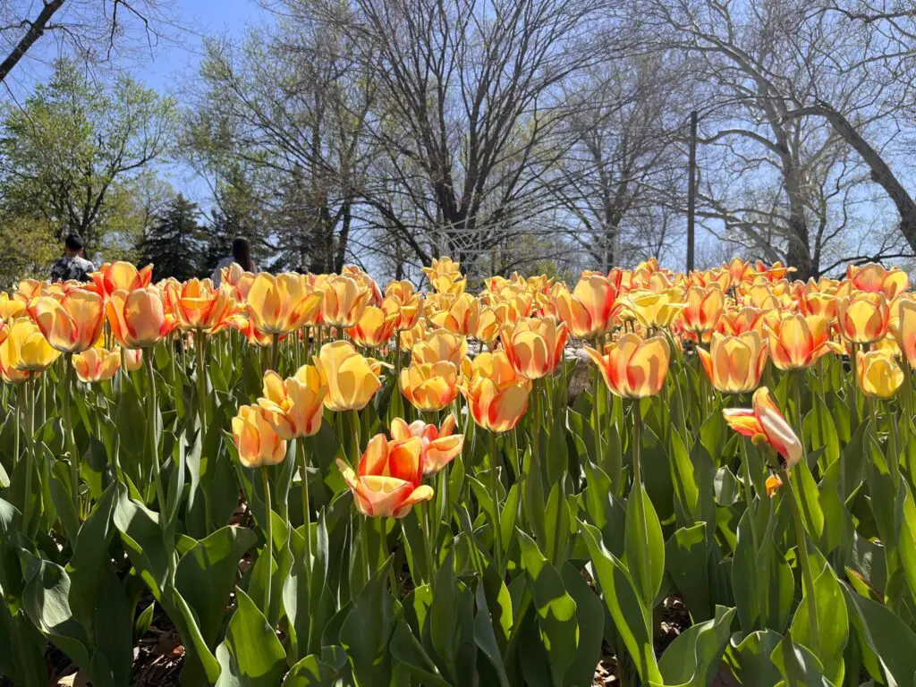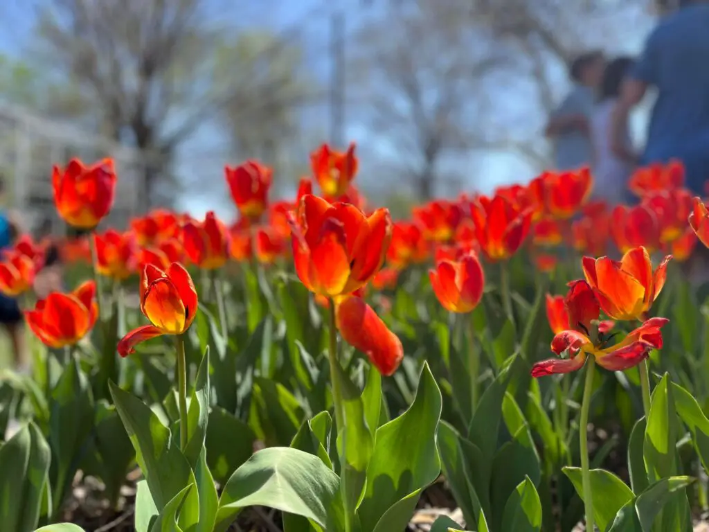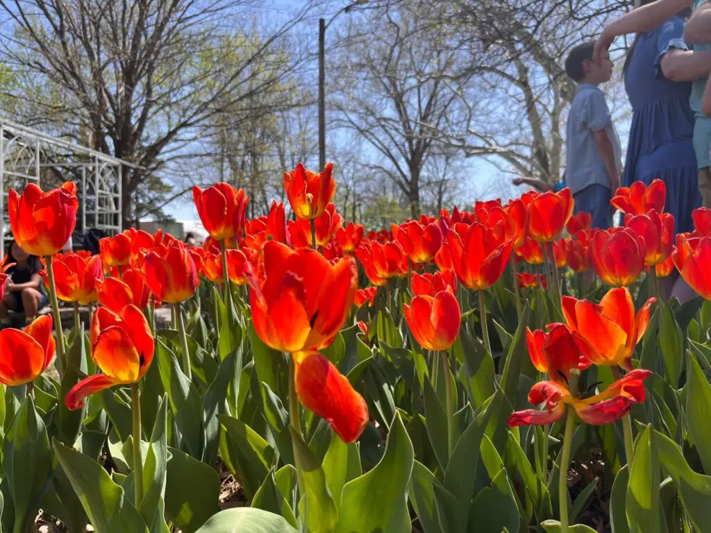 The festival was marred by the actions of two children who tore out between 25 to 50 tulips and threw them into the pond, there were still plenty of tulips on hand and the flower beds were popular photo spots.