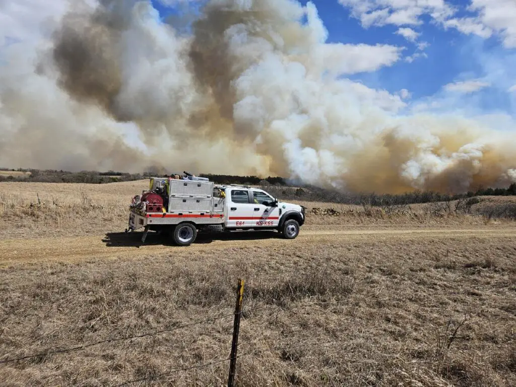 Firefighters from numerous departments including Riley, Marshal and Clay counties, as well as Kansas Forest Service and the Kansas Department of Wildlife and Parks are on scene providing support and assistance. County officials say a firefighting aircraft has also been dispatched to the area.