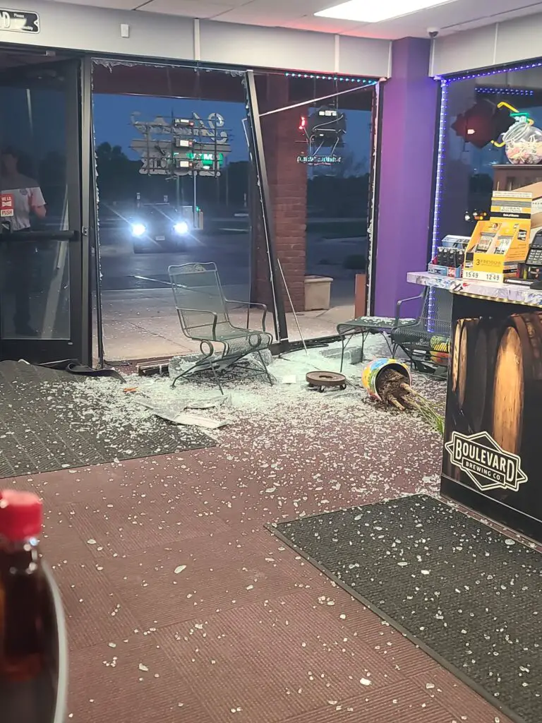 Store owner Mike Irvin says he and his wife Lisa were not present at the time of the crash and were called to the store by an employee.