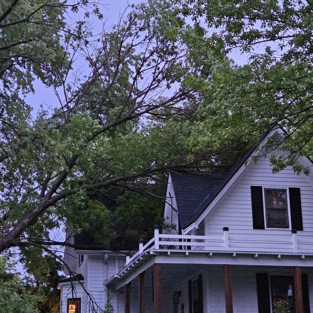 A brief power outage was noted in Junction City due to a tree blown over onto Jackson Street. Elsewhere there were reports of tree limbs onto houses in the Candlewood area and up to baseball sized hail north of Riley.