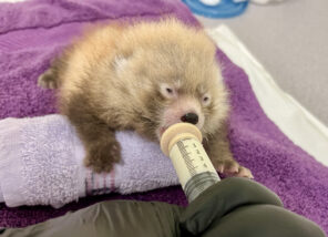 red panda2 0 By KMAN Staff on August 14, 2024 Picture by Head Keeper Caitlin Kenney of Suni being fed.