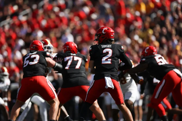 Cincinnati quarterback Brendan Sorsby stands in the pocket during the Bearcats’ win over Iowa State at home on Saturday at Paycor Stadium. Courtesy of Cincinnati Athletics