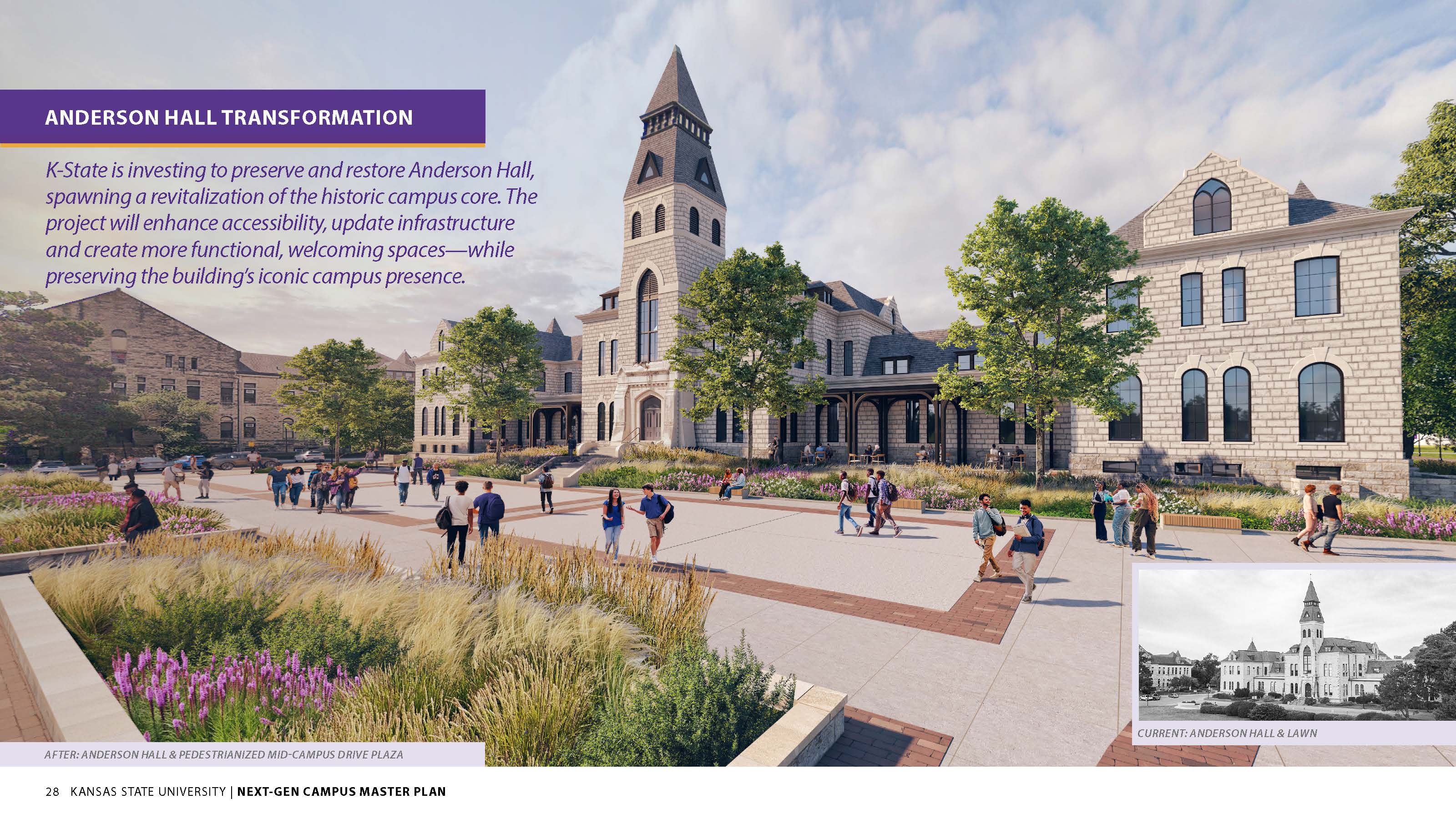 Johnson said the first projects include restoring the exterior of Anderson Hall, renovating the central portion of Seaton Hall, demolition of Shellenberger Hall, renovating the Trotter Lab, remodeling the south part of Kedzie Hall for the Wildcat One Stop and renovating the Bioprocessing and Industrial Value-Added Program facility.