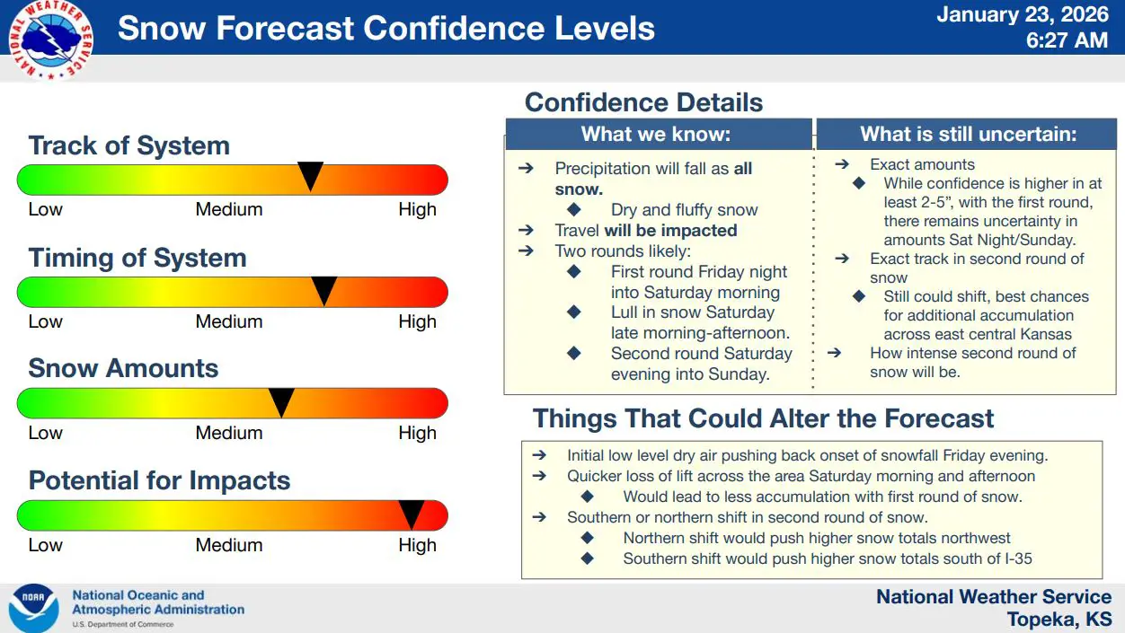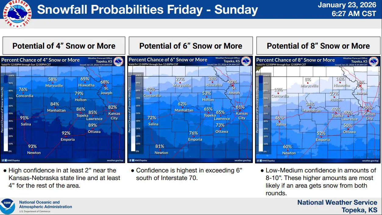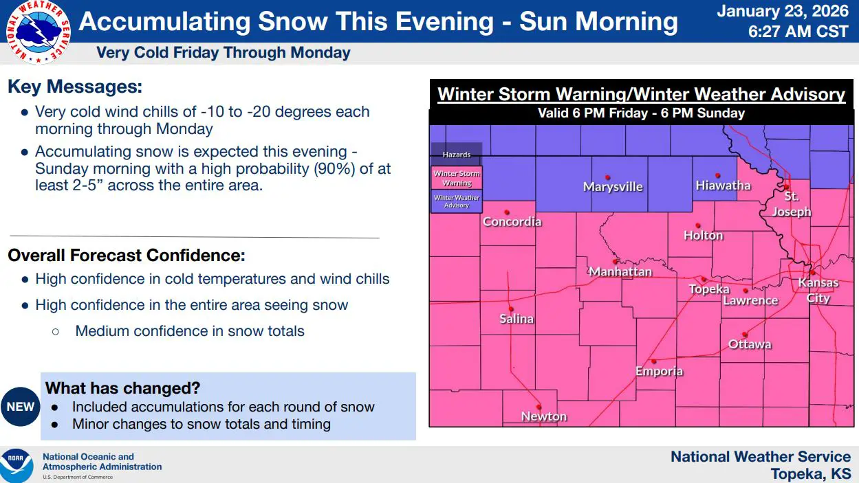 A winter storm is expected to impact much of northeast and east-central Kansas from Friday evening through early Sunday, bringing accumulating snow and dangerously cold temperatures, according to the National Weather Service in Topeka.