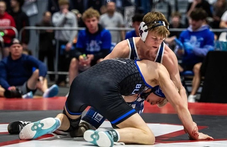 Caeleb Hutchinson closed his Manhattan career the only way he knows how — on top. The senior captured his fourth individual state championship at 150 pounds, defeating Roman Clouse of Gardner Edgerton in the title match and becoming one of the most decorated wrestlers in state history.