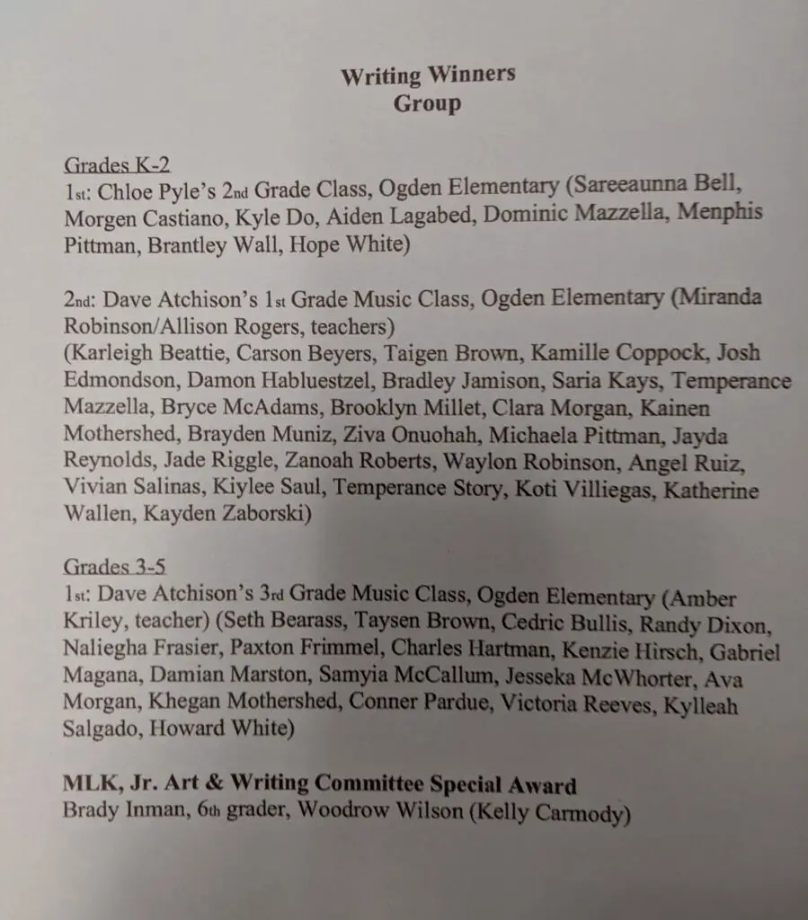 The celebration concluded after a performance Ogden Elementary music teacher Dave Atchison and the Ogden Elementary School Power Panther Club — a long-lasting component of the annual event. Those in attendance were also encouraged to sign a Martin Luther King Jr. quilt.