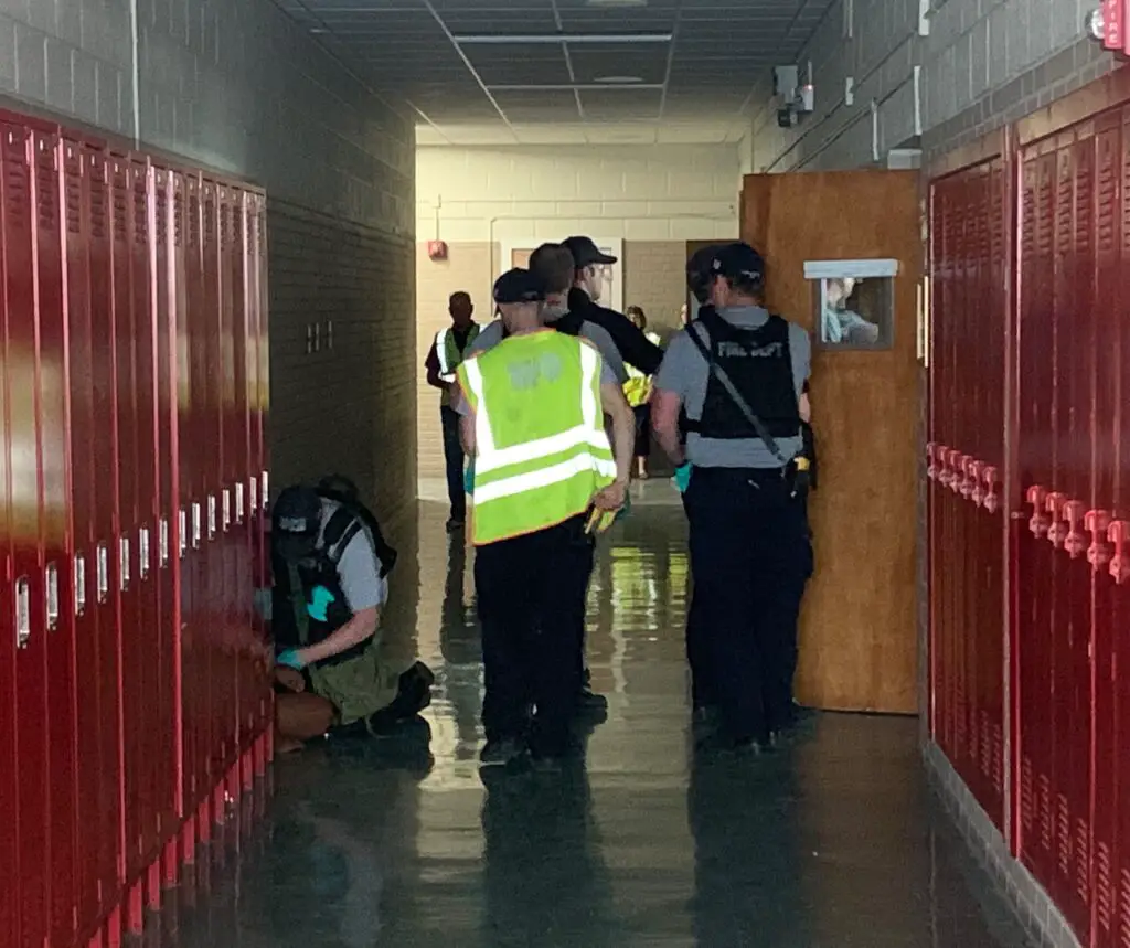 Riley County emergency services personnel came together Wednesday for a joint training exercise at Manhattan Catholic Schools.