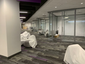 Doctor Goetsch says this small study space, compared to the rest of Hale Library, will provide 14 group-study rooms and a large community area for students to use this semester while the restoration and construction crews work on the rest of the building.