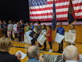 The ceremony included a speaker from K-State, elementary school children singing patriotic songs, and the winners of the essay contest presenting their essays. Audio from the ceremony can be found below, including those speeches.