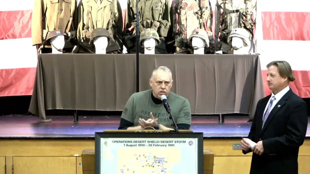 Moon’s speech centered around the battles associated with Desert Storm noting the 697,000 soldiers who took part in the war and the 299 lives lost. She ended her speech, tying together Gen. Schwarzkopf’s message to all veterans.