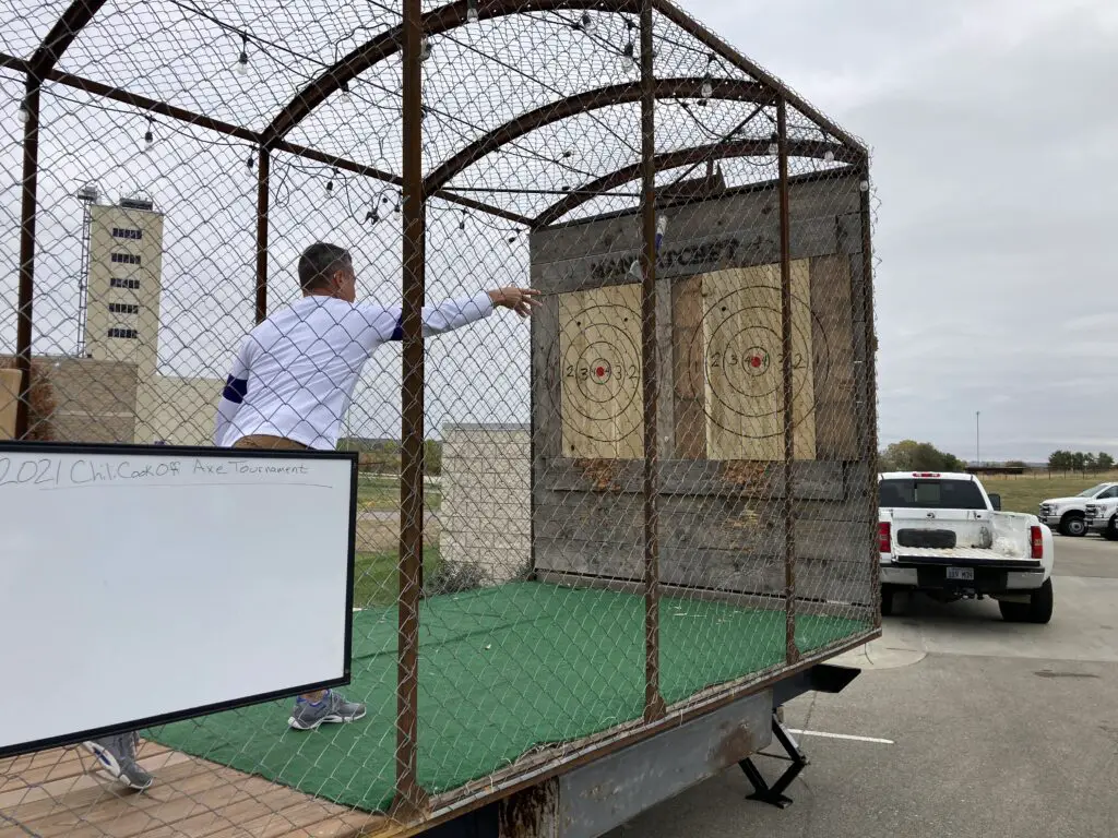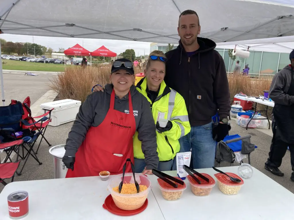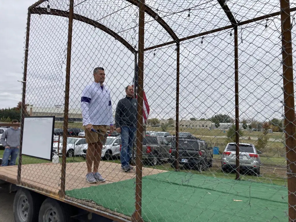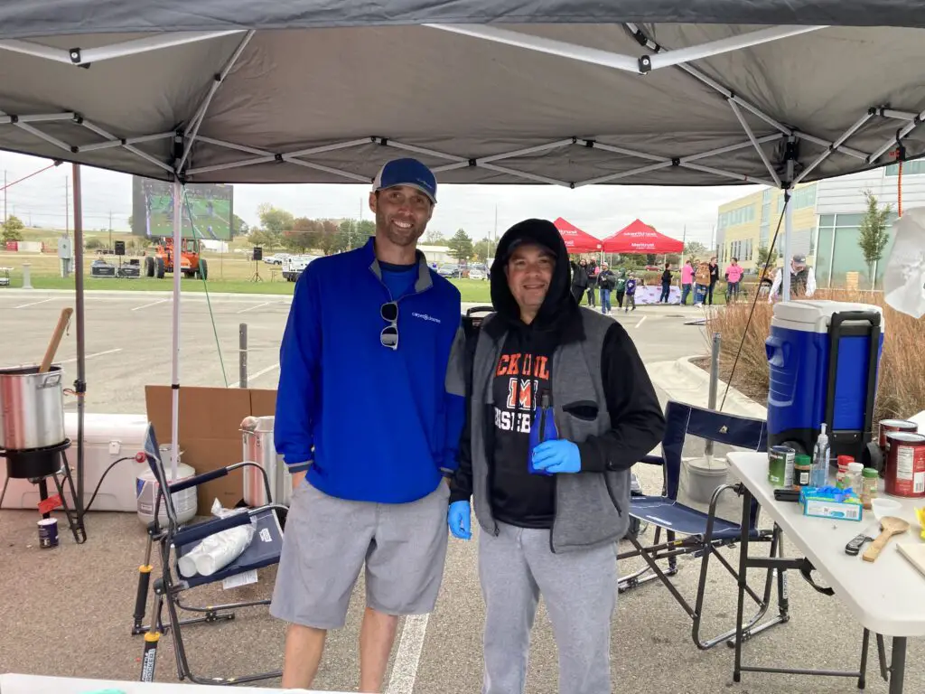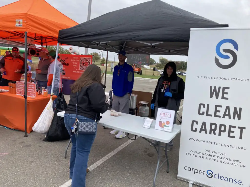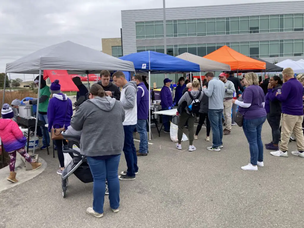Michael Peterson with Hy-Vee’s deli department’s team competed this year with his mother’s traditional recipe. He spoke to the event’s new location at the KSU Foundation Park.
